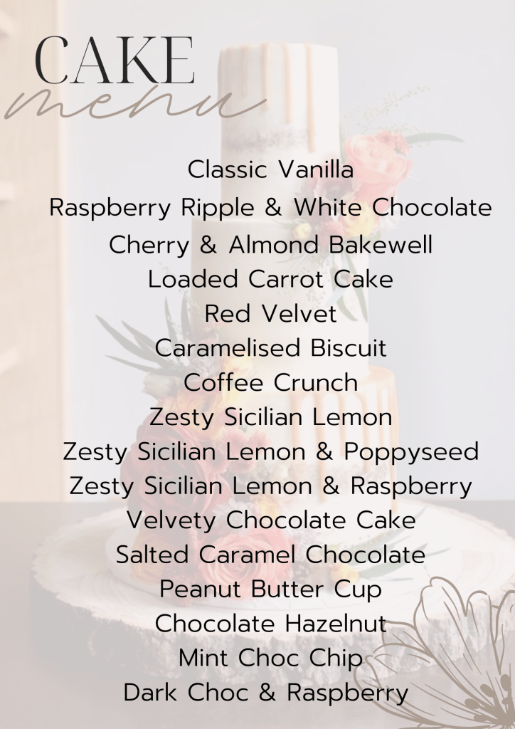 We want your cake to not only be the most beautiful thing you’ve ever seen but we also want it to be one of the tastiest cakes you have ever eaten too. We like to think we have all bases covered, whether you want something rich and chocolatey, light and fruity or a simple classic vanilla & jam.